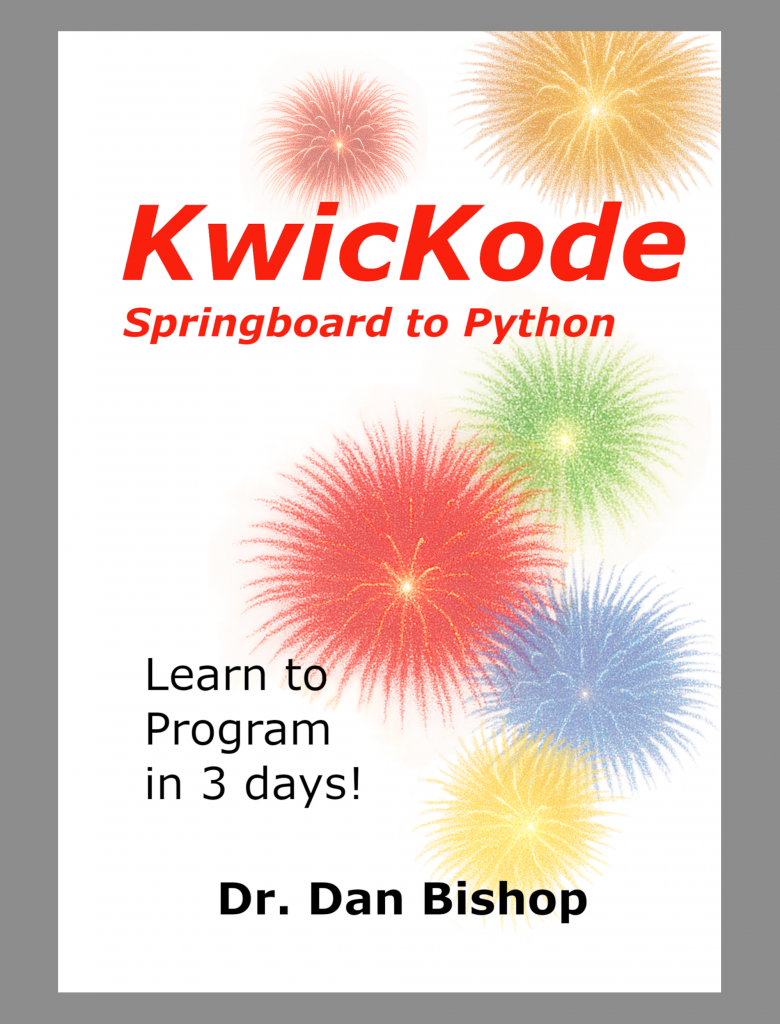 The KwicKode compiler (translator), which is included with the text, converts your KwicKode text files into Python for execution. Because KwicKode is built over Python, learning KwicKode is an excellent first step toward learning Python. The transition to learning Python is easy and straightforward. In addition, many of Python’s functions can be incorporated into a KwicKode program using KwicKode’s assignment or display commands.